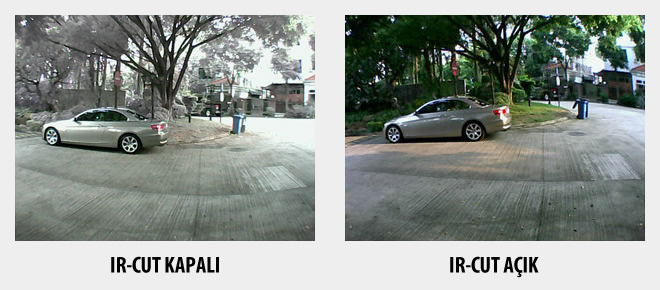 Infrared Cut Filter Removal; IR Cut Filter & ICR Nedir? Kamera hassas renk üretimi için renkli bir kamera gibi çalıştığı zaman IR kesme filtresi de çalışmaktadır. ICR ile, filtre kaldırılarak siyah-beyaz modda çok daha fazla ışık hassasiyetine izin verilir. Gündüz şartlarında kızılötesi ışıklar kameranın görüntü kalitesini olumsuz etkilediğinden normal şartlarda kameraların görüntü algılayıcılarının üzeri kızılötesi ışığı geçirmeyecek bir sabit bir filtre ile kaplanır.Fakat bu sabit filtre gece şartlarında infrared aydınlatma ile görüş yapan kameralarda kullanıldığında aydınlatmanın ışığınıda engelleyeceğinden kullanılmazlar.Bu nedenle gece görüşlü kameraların gündüz görüntüleri istenilen kalitede olmaz. ICR ise bu sorunu çözmek için görüntü algılayıcı sensörün önüne yerleştirilen, gece ve gündüz şartlarına göre mekaniksel olarak devreye girip çıkabilen hareketli bir filtredir.